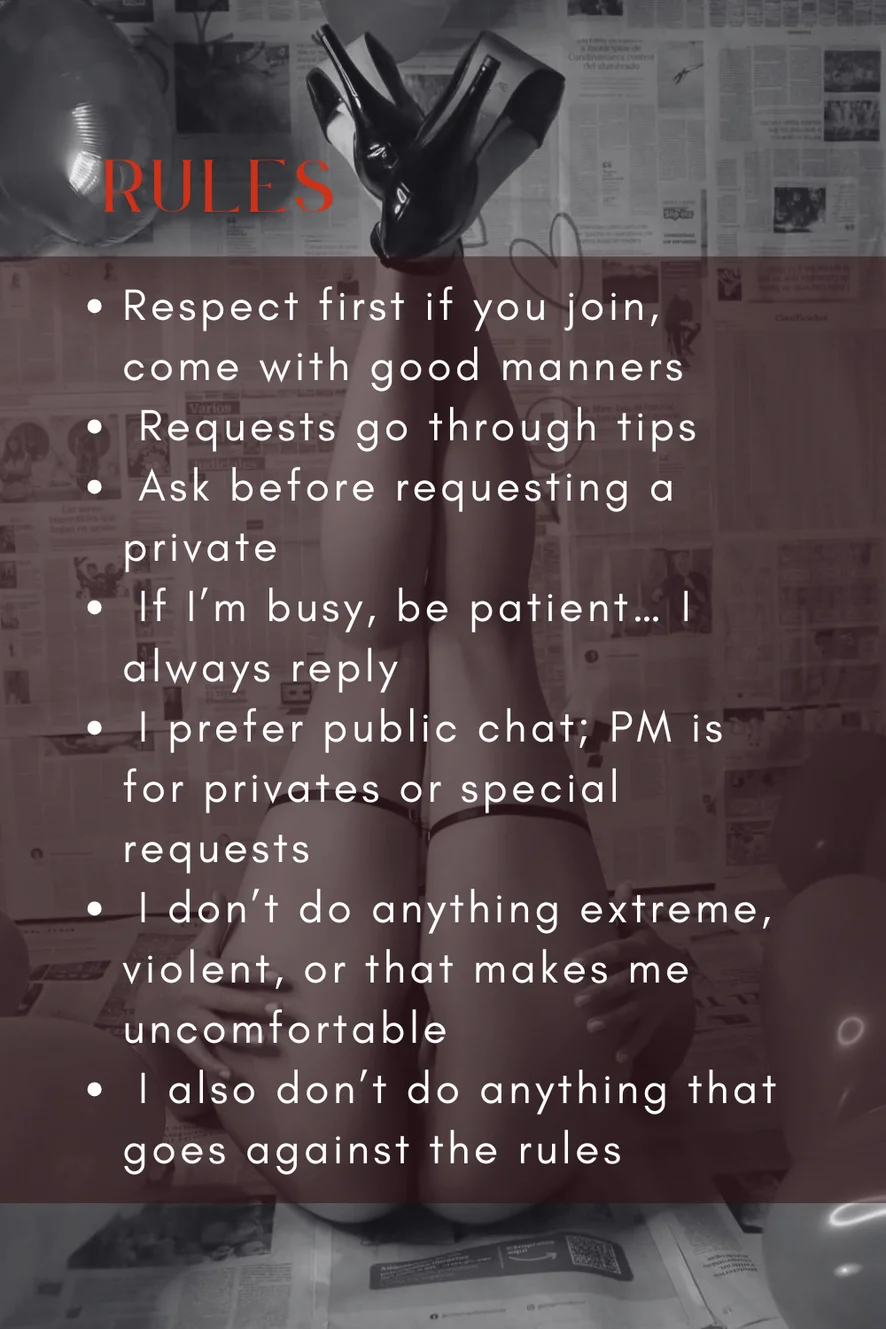 Me gusta mirarte de cerca, hablar contigo y mostrarte mi cuerpo lentamente. Disfruto jugando con mi coño para ti y tocándome por fuera (normalmente prefiero que veas todo mi cuerpo, no solo mi coño… soy más que eso). Me gusta aumentar la temperatura poco a poco. No hago nada extremo, y podemos hablar y planear lo que haremos para que ambos lo disfrutemos.